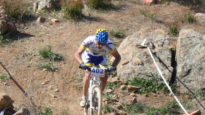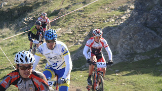 " Al ser la primera maratón de la temporada la gente esta con ganas de dar pedales, en la parrilla calculo que habría algo mas de 200 bikers. Para no variar salgo mal colocado y eso se convierte en un peligro, ya que tengo que ir adelantando a gente inexperta, que la verdad no se que hacen saliendo delante ya que es muy peligroso por la velocidad que se sale y no están acostumbrados, llegamos a la primera rampa y estoy muy atrás y mas que me voy a quedar por que empiezan mis problemas de cadena, tengo que poner pie a tierra y los huecos se abren....al llegar al llano toca calentón para coger al grupo de va delante mía en el cual esta Denche, los cogo y descanso un ratito, así hasta la primera subida larga que se me atraganta y me descuelgo, vuelvo a coger ritmo y ya me encuentro bien habiendo pasado la crisis, voy cogiendo a mucha gente y llego a la altura de Denche y le digo que se ponga a rueda......llegamos al repechón del 25%, empiezo con ánimos pero enseguida vuelven los problemas de cadena, esta vez en el plato pequeño con chupados de cadena, así es imposible competir, tengo que echar pie a tierra y claro el grupo se me va, una pena...tras superar el repecho pongo un ritmo fuerte y llego a la altura de un grupo donde esta Gonzalo y le digo que me siga, nos vamos solos.....así acabo la primera vuelta a base de calentones, en la segunda vuelta me pasaría igual, pero como ya sabia lo que me ocurría en las subidas duras, en los demás terrenos iba a mil, a mitad de vuelta volví a coger a Denche y ya hicimos toda la carrera juntos a un ritmo muy fuerte, al final llegamos el 12 y 13 de Master-30 que no esta nada mal, de no haber tenido problemas creo que hubiera estado luchando por el 5/6 mas o menos."